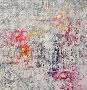 Durch diese Mischtechnik entsteht eine strukturierte Oberfläche und eine Körperlichkeit der Bilder, die den Betrachter zum Berühren herausfordern und die Grenze zwischen Gemälde und Objekt verschwimmen lässt.