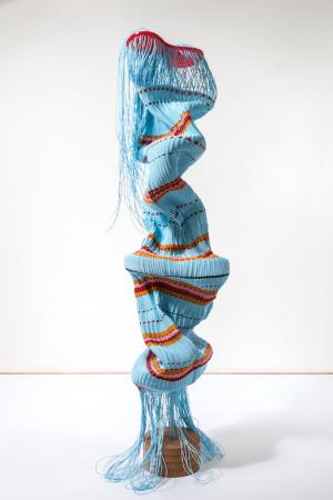 Susanne Thiemann entwickelt aus dünnen, bunten Kunststoffschläuchen sowie Fasern und Bändern wunderschöne experimentelle geschlungene Skulpturen.